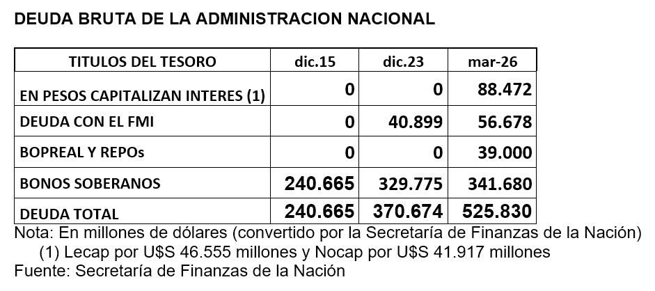 Que hasta diciembre de este año existen vencimientos de capital e intereses por casi 12.000 millones de dólares (incluido los 4.507 millones de julio 2026) y que la deuda para el año 2027 en divisas por capital e intereses (sin contar la deuda en pesos que es negocio con los bancos, agentes de liquidación y compensación, y las compañÃas de seguros), ronda los 21.500 millones de dólares, y no se sabe a ciencia cierta como se lo refinanciará, por lo que el panorama externo por más promesa de recurso naturales se hagan, de venta y concesión de nuestras empresas públicas, la mal llamada HidrovÃa del Paraná y las rutas nacionales, en el marco de la Guerra del Golfo, dista de estar “cerrado”, al contrario, son más los interrogantes que las certezas, en el flanco interno el cuadro es mucho peor.