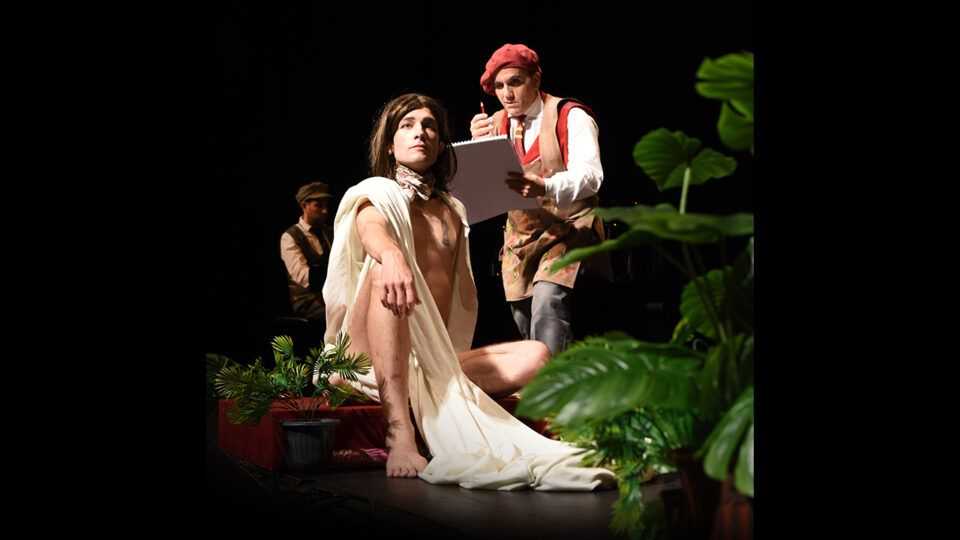 Modelo vivo muerto está llena de guiños absurdos, en principio, desde su narrativa que cuenta una historia que más que cerrar una idea va abriendo múltiples relatos paralelos que dejan al público sin palabras.
