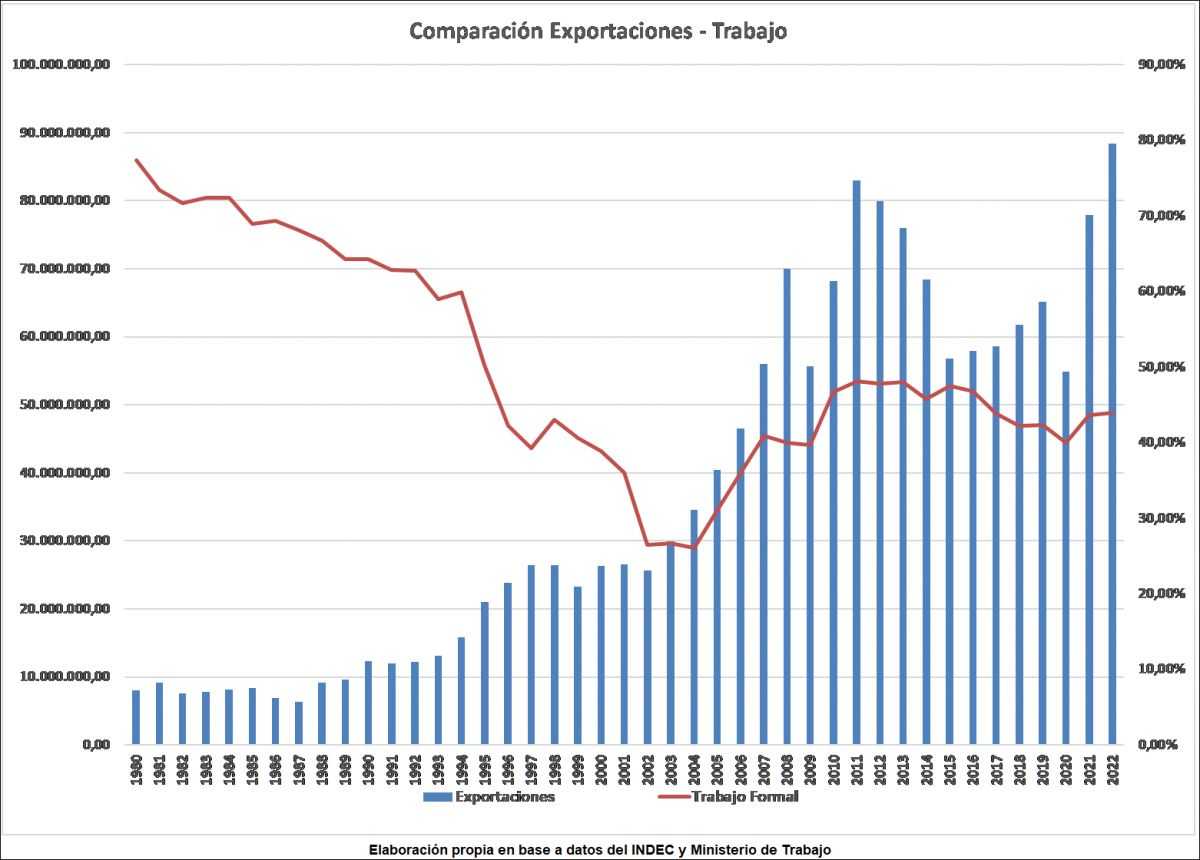 - La propuesta del aumento de exportaciones y apertura al mundo, no solamente que no es novedosa, sino que se viene realizando efectivamente, y con éxito, desde hace más de 40 años donde la Argentina aumentó un 1,200% sus ventas en dólares.