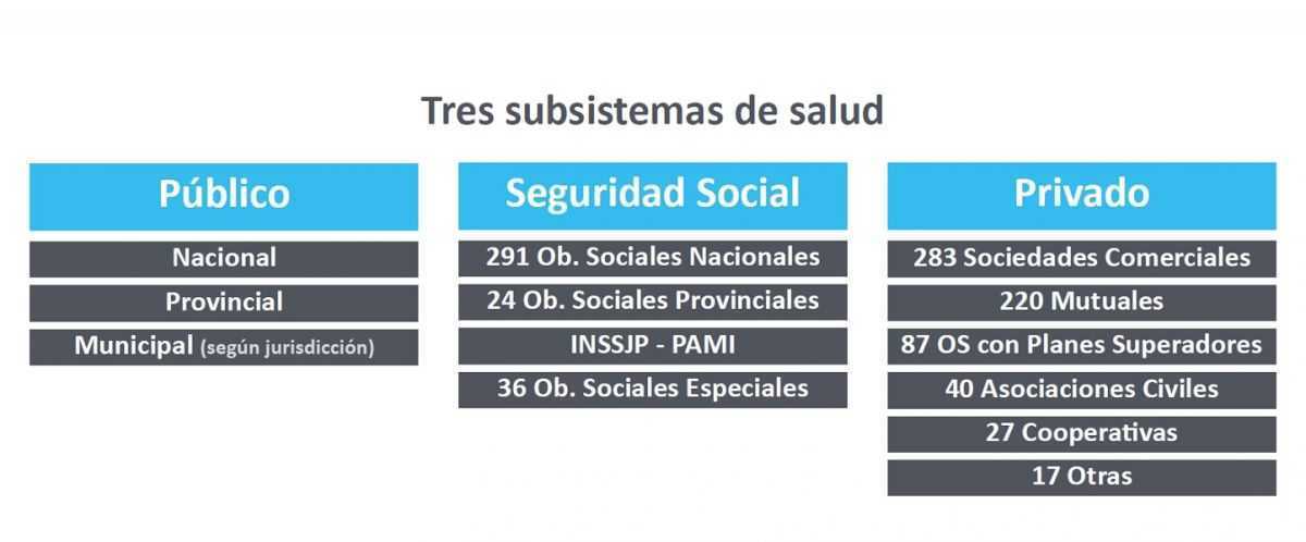 De acuerdo con el Padrón Único Consolidado Operativo (PUCO) por el Programa Sumar, se detalla que hasta agosto 2022 se registraron 14.892.254 personas con cobertura de obras sociales nacionales (31,6%), 7.178.589 de obras sociales provinciales (15,2%), 5.188.599 del PAMI (11,0%) y 19.921.618 poseen cobertura pública exclusiva (42,2%). Asimismo, a mayo de 2021, 6.796.690 personas contaban con cobertura de entidades de medicina prepagas, de las cuales se estima que entre 3,8 y 4 millones de personas derivan sus aportes desde una obra social nacional.