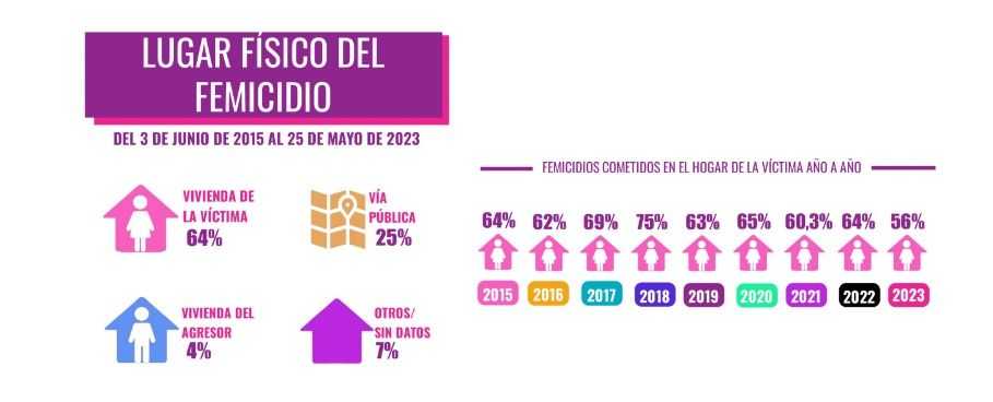 El estudio también indicó que el 63% de esos crÃmenes fueron en la vivienda de la vÃctima y perpetrados por pareja o expareja: se trata de una variable constante durante los ocho años, y nunca por debajo del 57%.