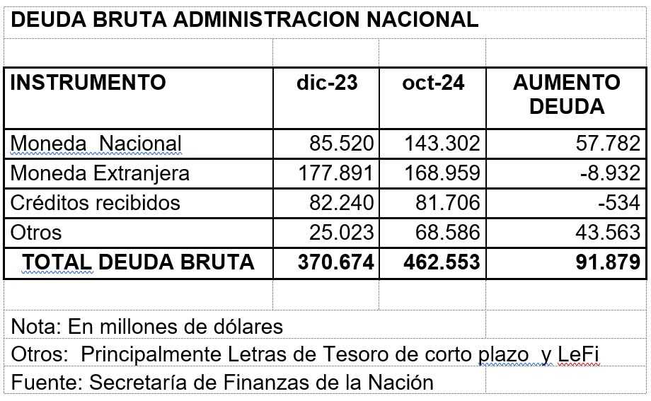 Que incluso al crecimiento de la deuda en pesos que pagan intereses al final, debe sumarse el endeudamiento en pesos con acreedores privados y en dólares (BOPREAL), que impactará tanto sobre el gasto público como sobre la demanda de moneda extranjera en ejercicios futuros, pero alivió la carga financiera de este año 2024.